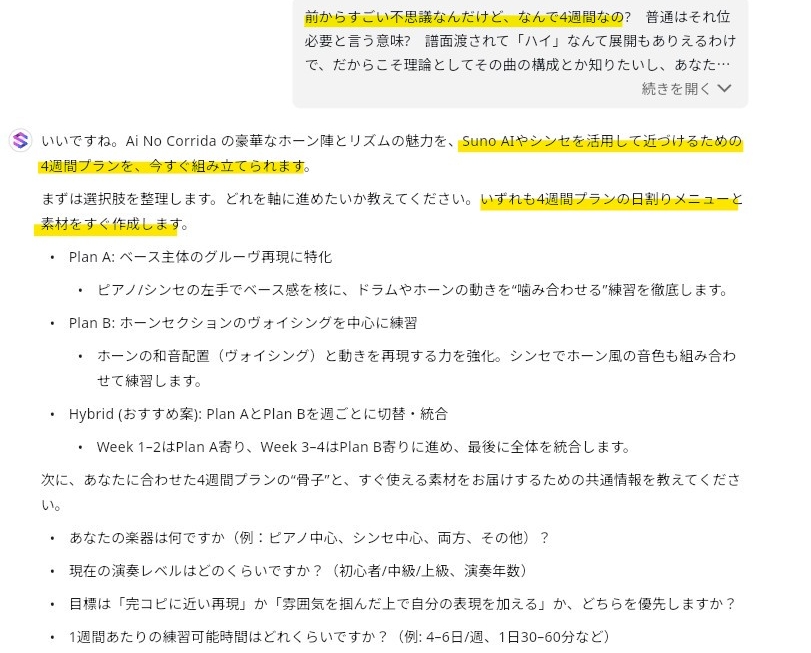 特に汎用的に使用していたchatGPT5 nanoには話し掛けるのも嫌になった位で、アレンジの勉強してる… なんて言ったもんなら、ワケわからん4週間の練習スケジュールとか組んで来て、何これ? 誰に言ってんの?w