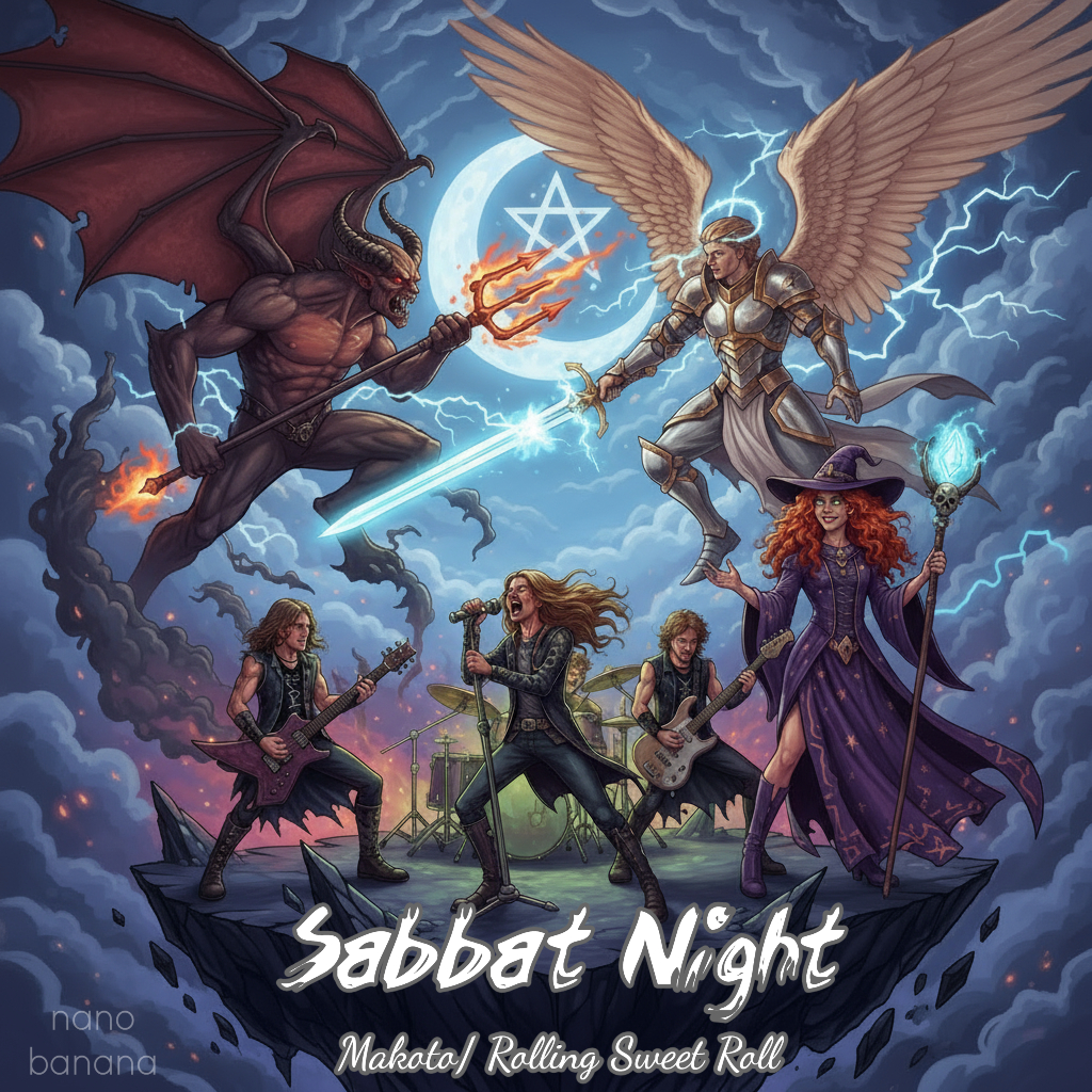 あとナノバナナのイラストが本当に良い仕事してくれていて、歌詞のままの世界感出してくれてます。サバトと言うのは、「魔女の集会」で悪魔を呼び出したりするもので、トンガリ帽子を被った魔女が沢山出て来たとしてもESOの魔女祭りとは少し違う。そもそも天使はサバトやハロウィーンとも関係ありません。なんで天使が登場したか? この歌にも「サバトの夜にロックなんてやったらヤバイよ、何が起きるかわからない」とあって、自分にとっては天使は完全正義のイメージは一切なくて、ESOで天使っぽい存在はやはりメリディアか? メリディアも完全正義じゃないし、高慢ちきなところも自分がイメージするところの天使によく似てる感じ。