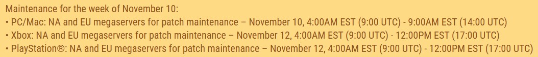 11月10日 PC版定例メンテナンス 11月12日 コンソール版メンテナンス