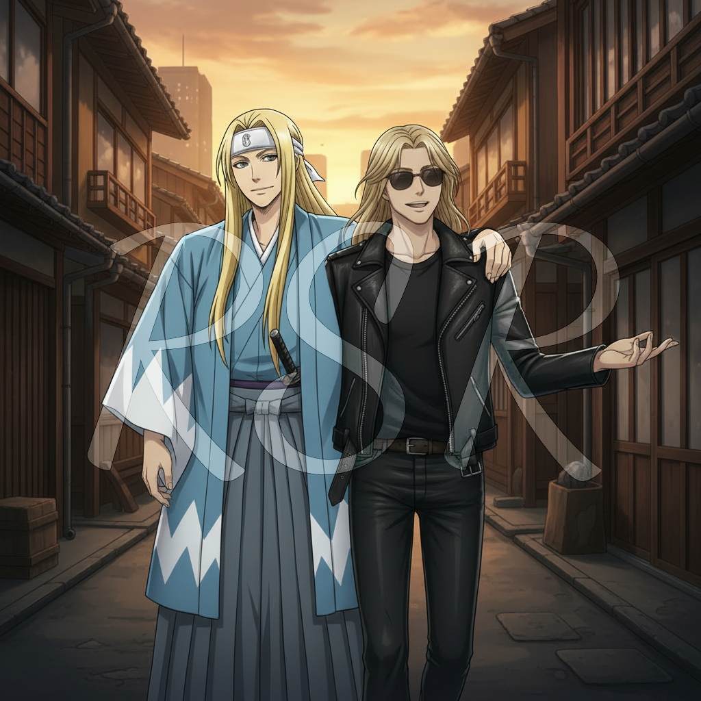 それで、Dovah(皮ジャンのシンガー)の方が着物を着てないから着せてくれ… と言ったら、Nano Bananaはチャンバラの絵を書いて来た…www これはどういう意図なんだよ? www