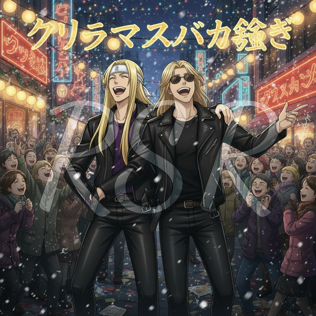 これらの一連の絵は、Gemini2.5(nano banana)のAI絵師が書いてるけど、年末年始だし、正装と言う事で二人に新選組の羽織とハカマを着せた絵を書いてくれ…と指示出してたわけ。実は自分の絵と言うのは、「まこと」の名前を引っ掛けて新選組の格好がデフォとして書かれて来て(写真左)、そしたら、今回は最初、nano bananaはこういう絵を書いて来た。(これドヴァの右手はどうなってるんだろ? たまにNanoの絵には腕が3本あったりするからwww)
