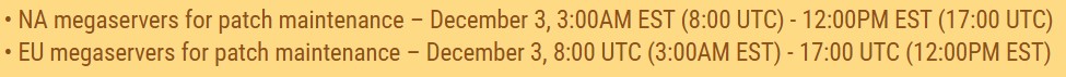 全サーバー共通 日本時間12月3日 午後5時より翌日午前2時までの9時間予定 (パッチあり)